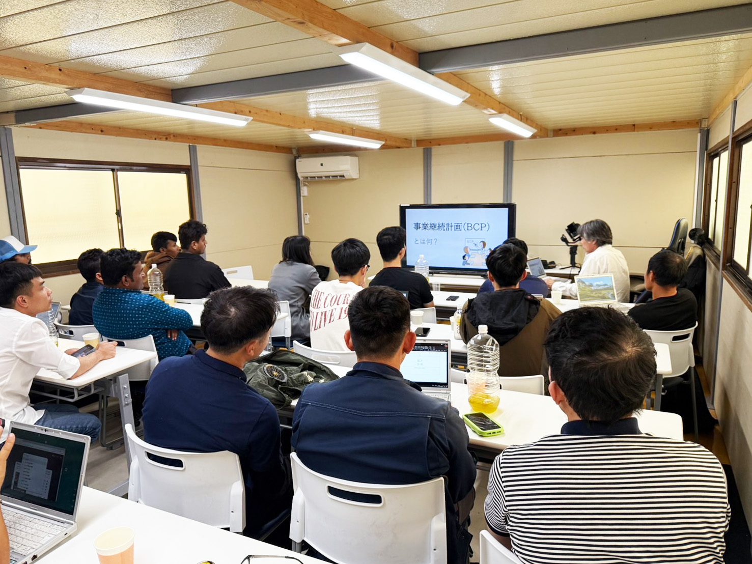 事業拡大によるスタッフ増員に伴い事業継続計画の説明会を実施いたしました。具体的には、震災発生時インフラ(エレベーター、電車、バス)が停止したときの行動、事業所や社員寮にいる時の避難場所の確認等です。参加国籍は日本をはじめ、スリランカ、バングラデシュ、ベトナム、ミャンマー(あいうえお順)のスタッフです。弊社はスタッフの安全を第一に考え、地質調査を進めるため適宜BCP説明会を開催するとともに、お客様に安心感を深めていただけるよう、BCP運用状況の情報公開に努めています。
