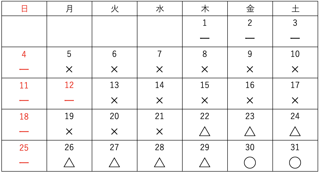 △:予約調整中を含み若干空きあり
