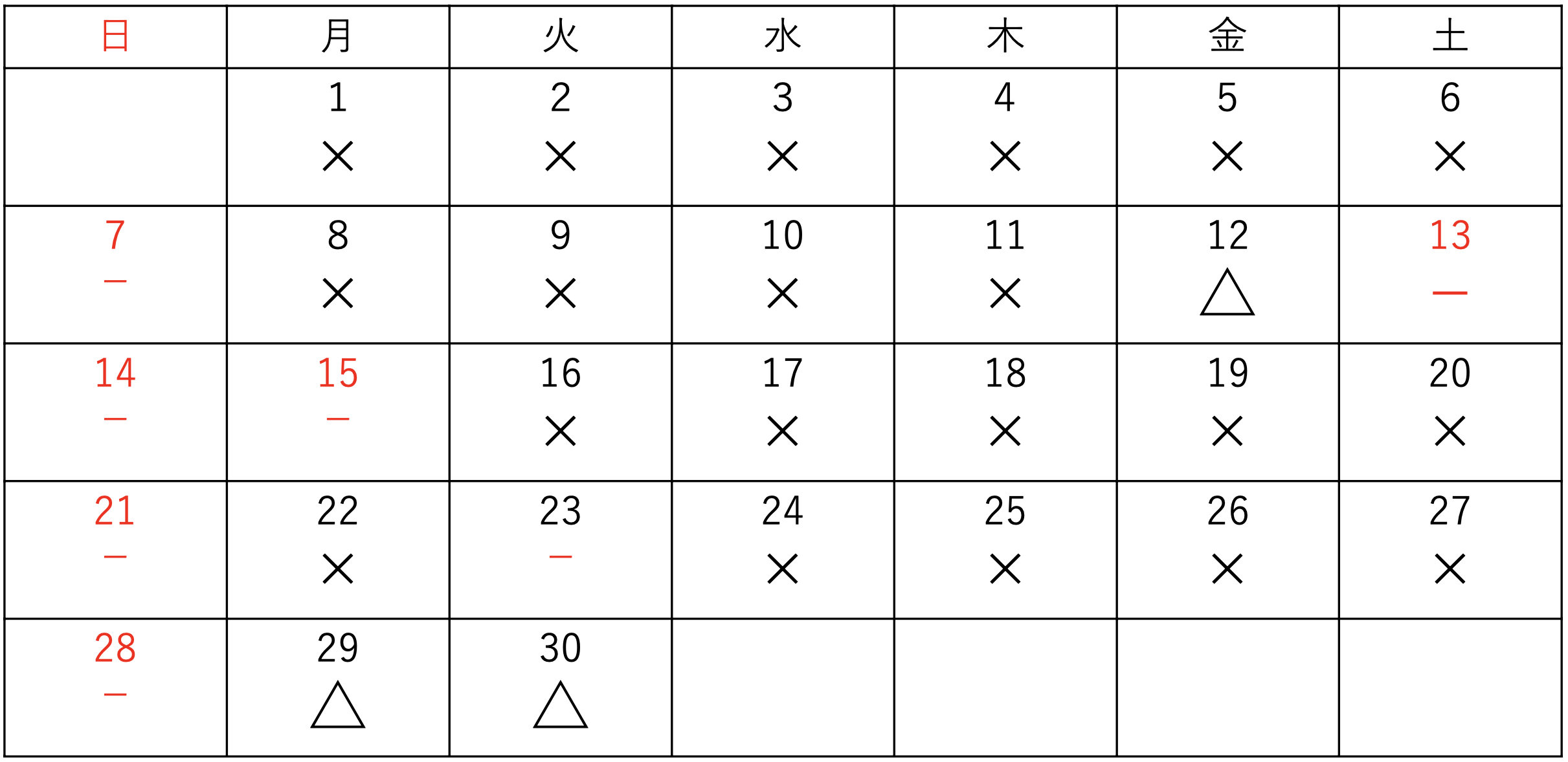 9月29日現在、弊社は 13班体制(自社班) でボーリング調査を行っています。稼働状況は次の記号で表しています。